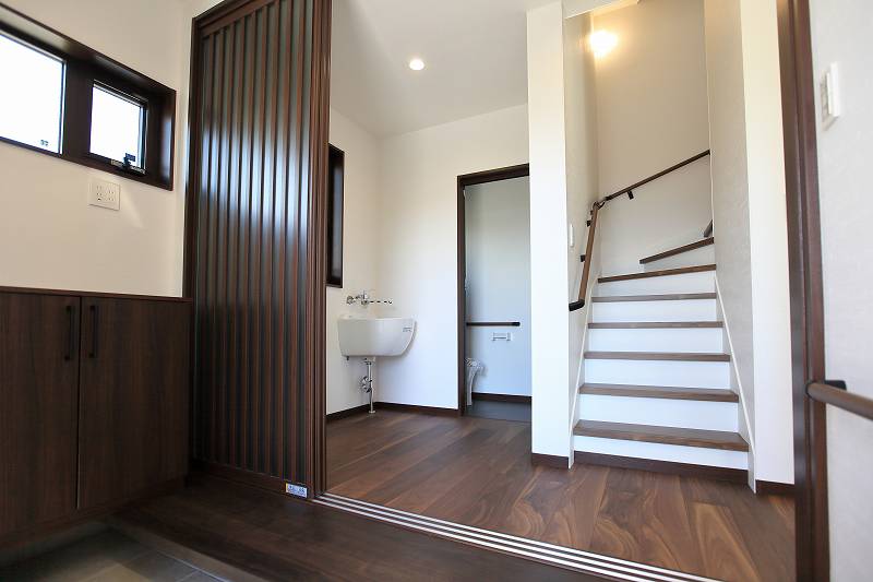 玄関に入るとすぐの場所に大きめな洗い場を設置