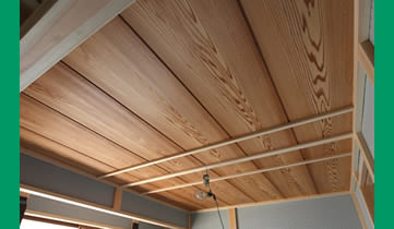 天井は秋田杉を使用しています。外観が普通の木材とは異なり、木のぬくもりを一層感じることができます