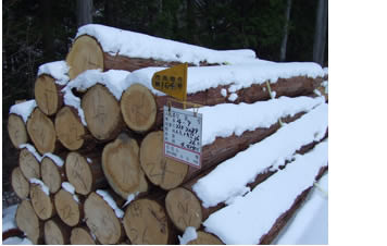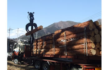 木曽檜は特殊トレーラーにて山梨県まで運ばれてきます。