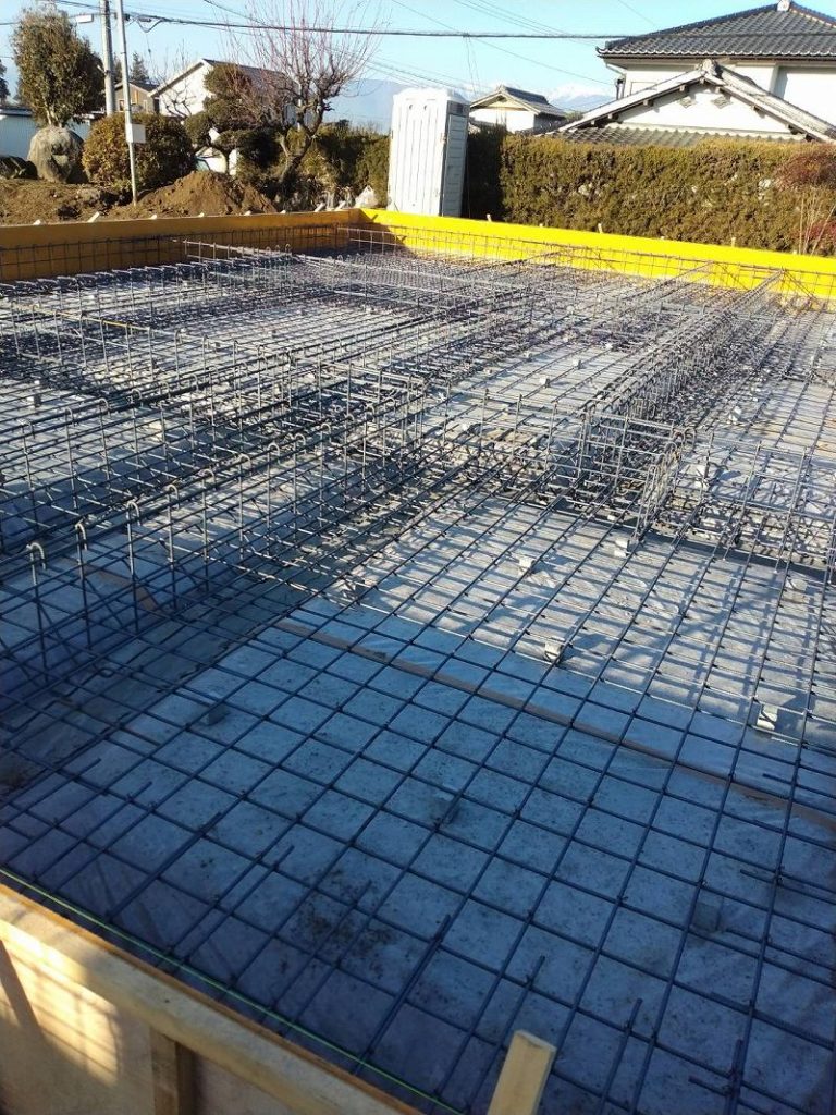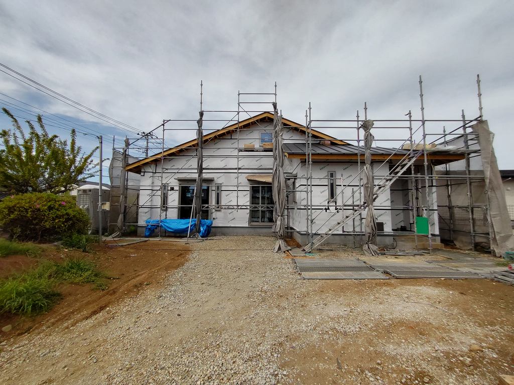 笛吹市一宮町で平屋新築住宅の工事が始まりました。地盤調査した結果改良工事が必要となりまして砕石パイル、エコジオ工法を施工しております